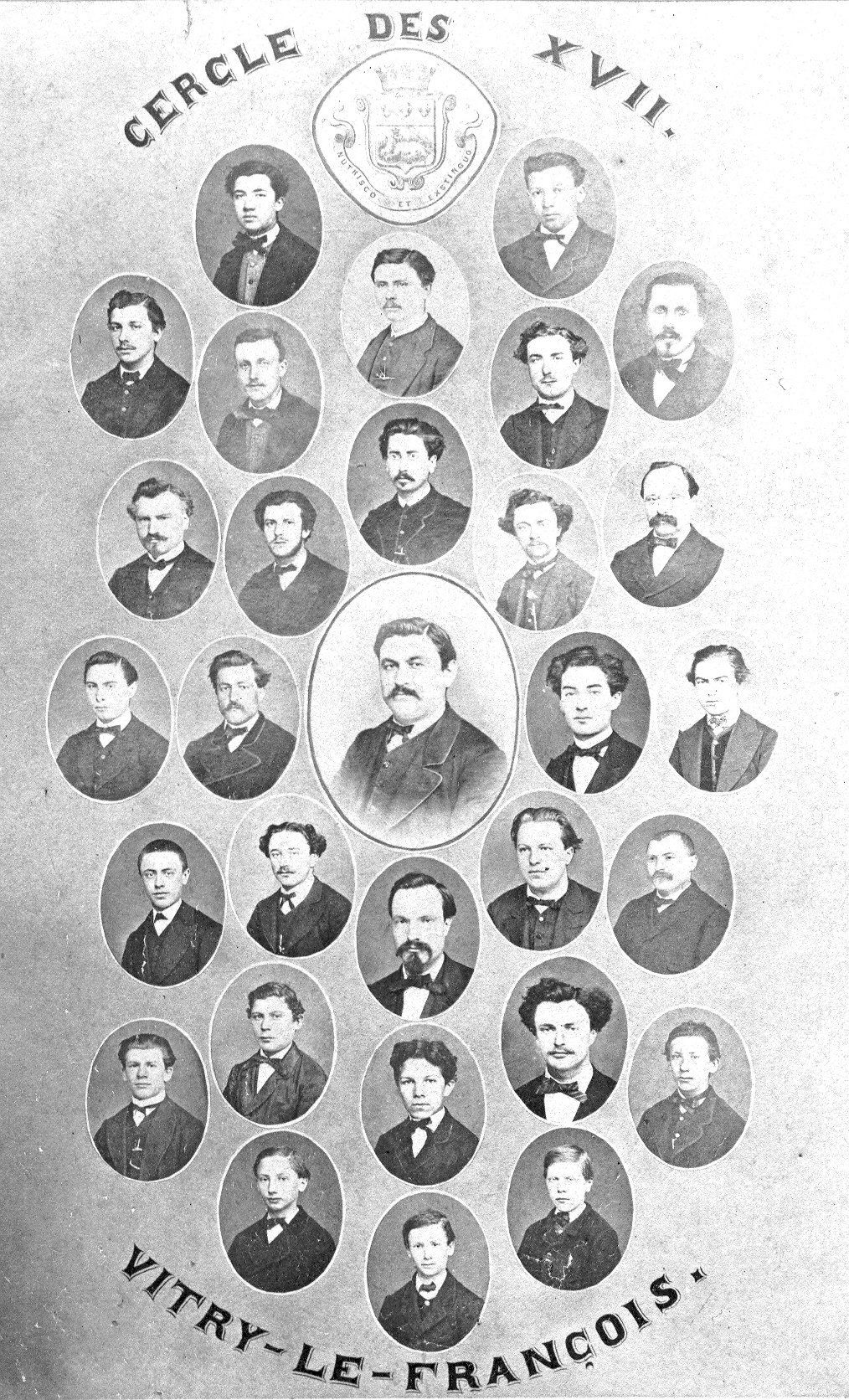 Le 5 mars 1869, dix-sept musiciens, sous la conduite de M. Gasser (photo centre) signent avec le maire de Vitry-le-François M. Cosquin l’acte fondateur d’une nouvelle fanfare : Le cercle des XVII. Ce nouvel orchestre a pour objectif : « d’entretenir et de propager le goût de l’art musical dans le pays